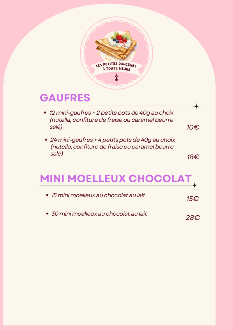 Partagez des moments en famille , entre amis, entre collègues avec nos délicieuses petites douceurs qui réchauffent le cœur et font le bonheur des petits comme des grands. Je vous propose sur Guyancourt de savoureuses petites crêpes, des petites gaufres dorées, des mini pancakes succulents et des mini moelleux au chocolat, parfaits pour des instants gourmands ensemble !